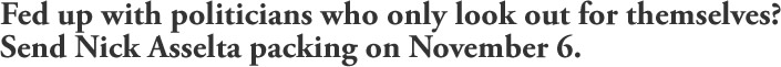 Nick Asselta wined and dined lobbyists at an exclusive island resort – in exchange for campaign cash.